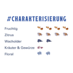 Floral: 2 von 4, Fruchtig: 4 von 4, Kräuter & Gewürze: 1 von 4, Wacholder: 2 von 4, Zitrus: 4 von 4