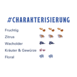 Floral: 2 von 4, Fruchtig: 3 von 4, Kräuter & Gewürze: 1 von 4, Wacholder: 2 von 4, Zitrus: 3 von 4