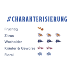 Floral: 2 von 4, Fruchtig: 2 von 4, Kräuter & Gewürze: 2 von 4, Wacholder: 3 von 4, Zitrus: 3 von 4