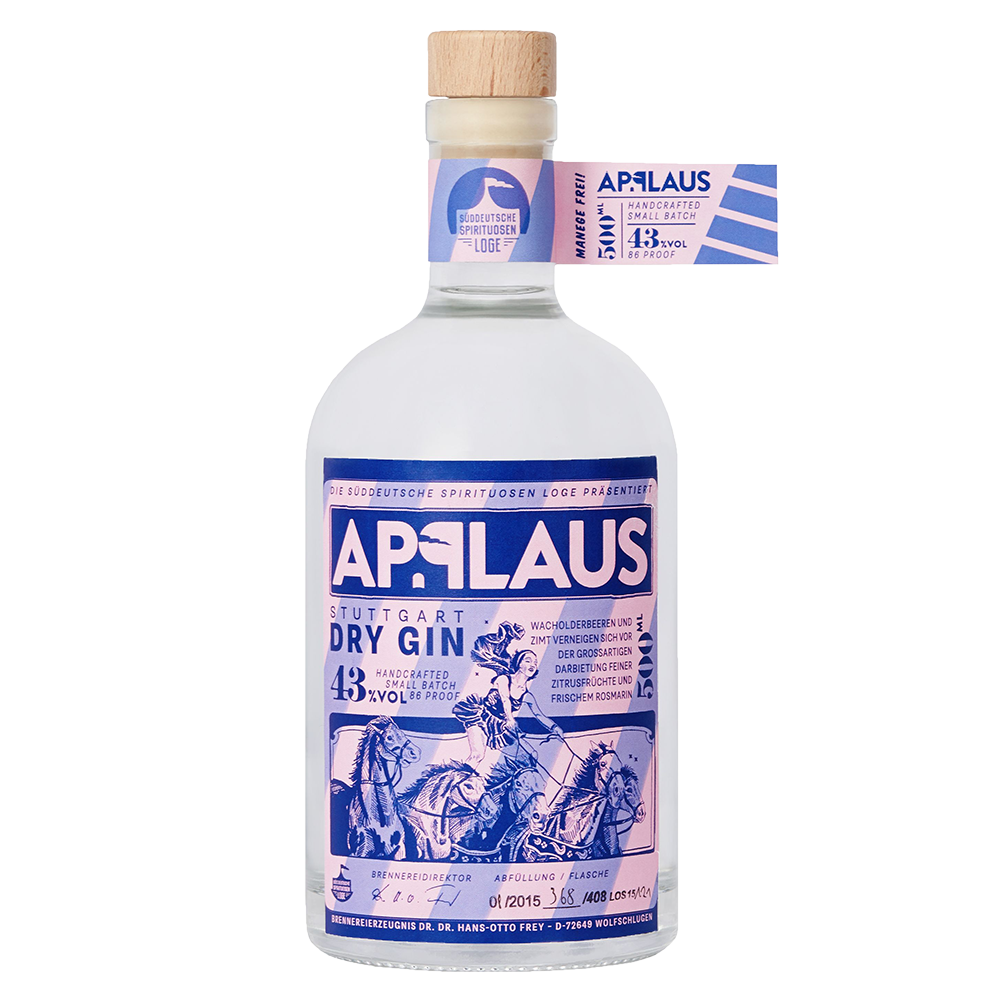 | Applaus Stuttgart Dry Gin | Deutschland | Europa | 5cl | 43,00% | Brennerei Dr. Dr. H.-O. Frey Baden-Württemberg |