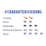 Floral: 4 von 4, Fruchtig: 2 von 4, Kräuter & Gewürze: 3 von 4, Wacholder: 3 von 4, Zitrus: 2 von 4