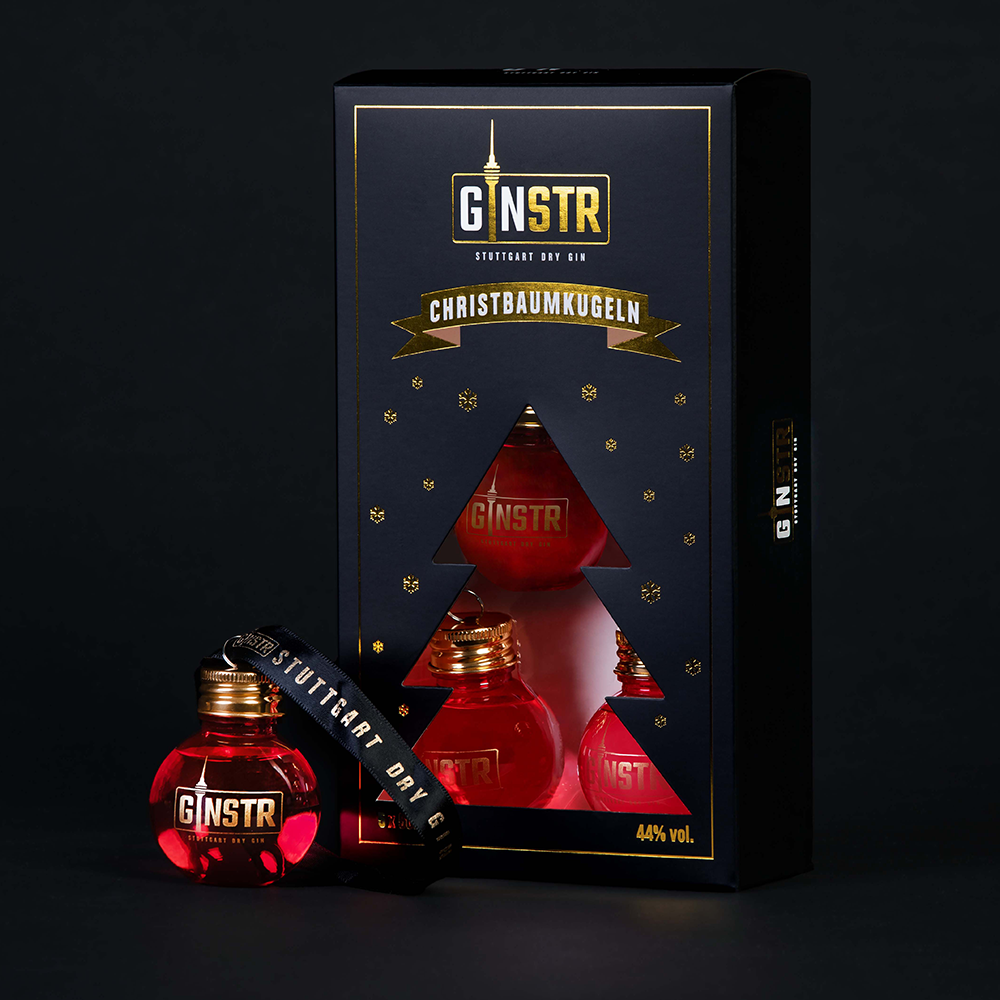 GINSTR Christbaumkugeln sind mehr als nur festlicher Baumschmuck. Sie beherbergen das Herzstück von Stuttgart - den original GINSTR - Stuttgart Dry Gin. Sorgfältig handgefertigt und verfeinert mit insgesamt 46 erlesenen Botanicals, die größtenteils aus Stuttgart und der umliegenden Region stammen, darunter aus der renommierten Stuttgarter Markthalle und von lokalen Händlern. Die Verwendung von Cannstatter Mineralwasser verleiht dem Gin die charakteristische Finesse und Reinheit.